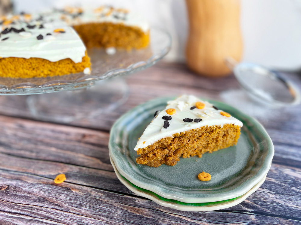Voilá! Kremet gresskarkake er den perfekte kaken til Halloween. En nydelig, næringsrik og saftig kake laget av gresskar, med krydret kanelsmak og saftig kremlokk. Og siden det helt sikkert blir nok av søtsaker på Halloween, er denne kaken uten tilsatt sukker! I tillegg til at du kan krysse av på én av de “5 om dagen”!