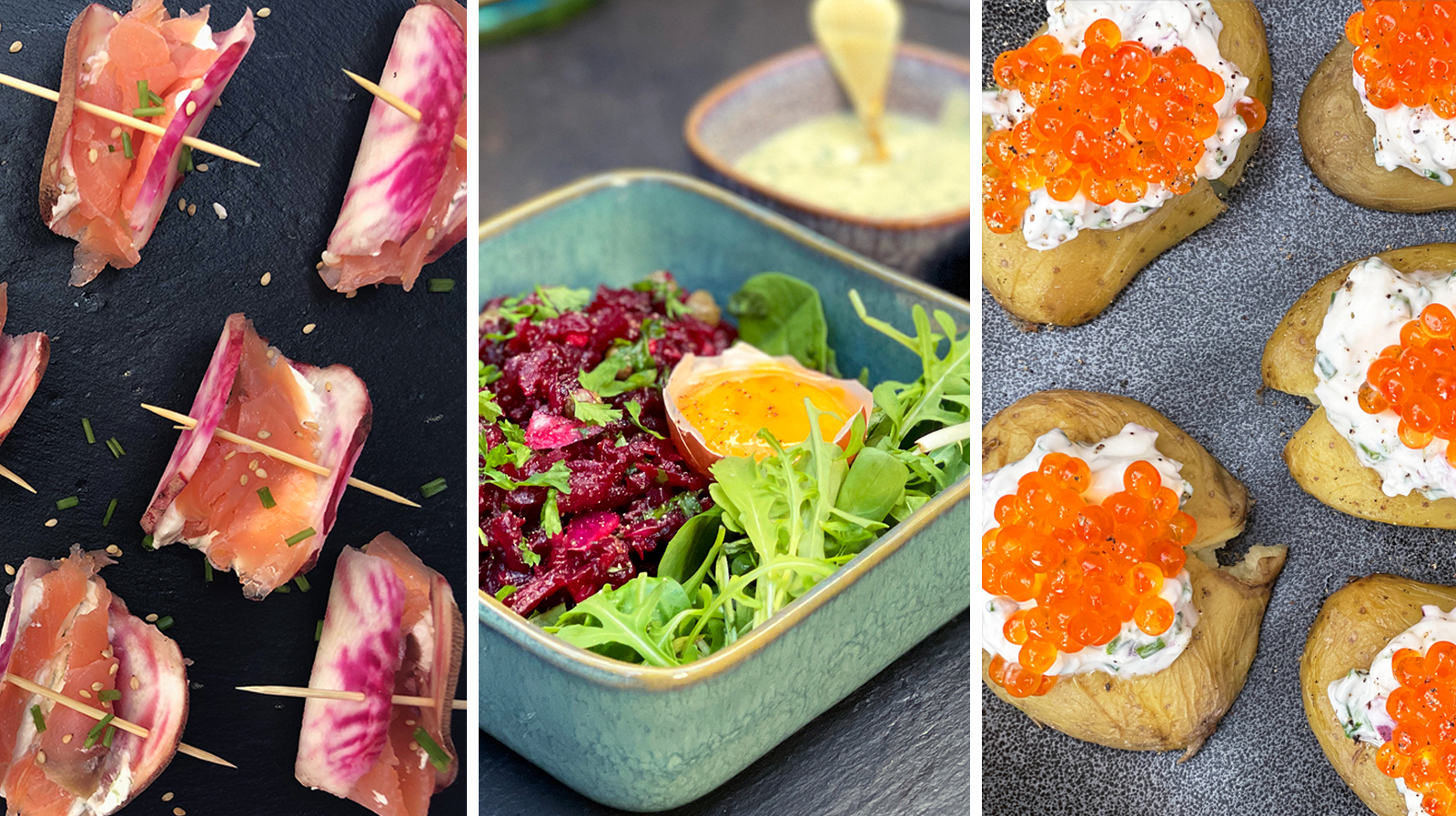 Den klassiske julematen vil jeg aldri finne på å tulle med. Men julen er lang, og det kan jo bli litt for mye av det gode, bokstavelig talt. Derfor har jeg laget et lite tapashefte, der frukt og grønt spiller hovedrollen. Slik at du kan imponere familie og venner med små og lette retter, som setter farge på festbordet – uten å gjøre dere “julaftenmett”!