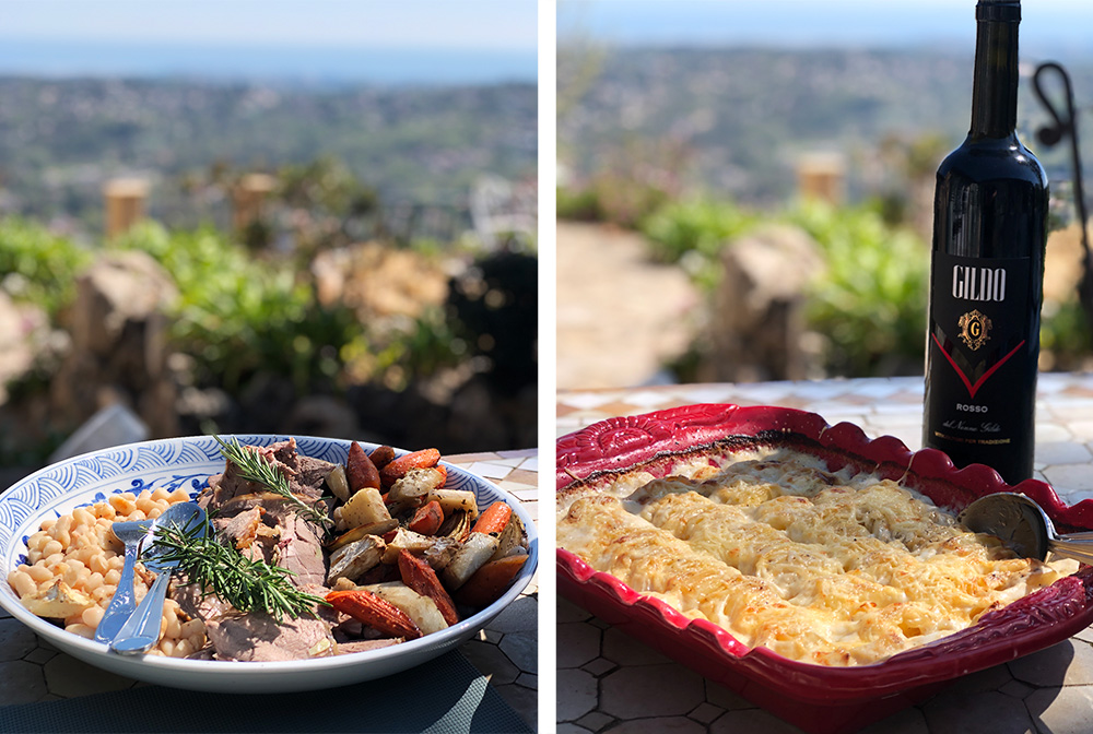 Maten er (som den alltid er i Frankrike) viktig, og 1. påskedag står det ofte lam på menyen, akkurat som i Norge. Det finnes ikke noen spesiell påskedessert som jeg vet om, men måltidet avsluttes gjerne med noe “sjokoladete” i en eller annen variant.