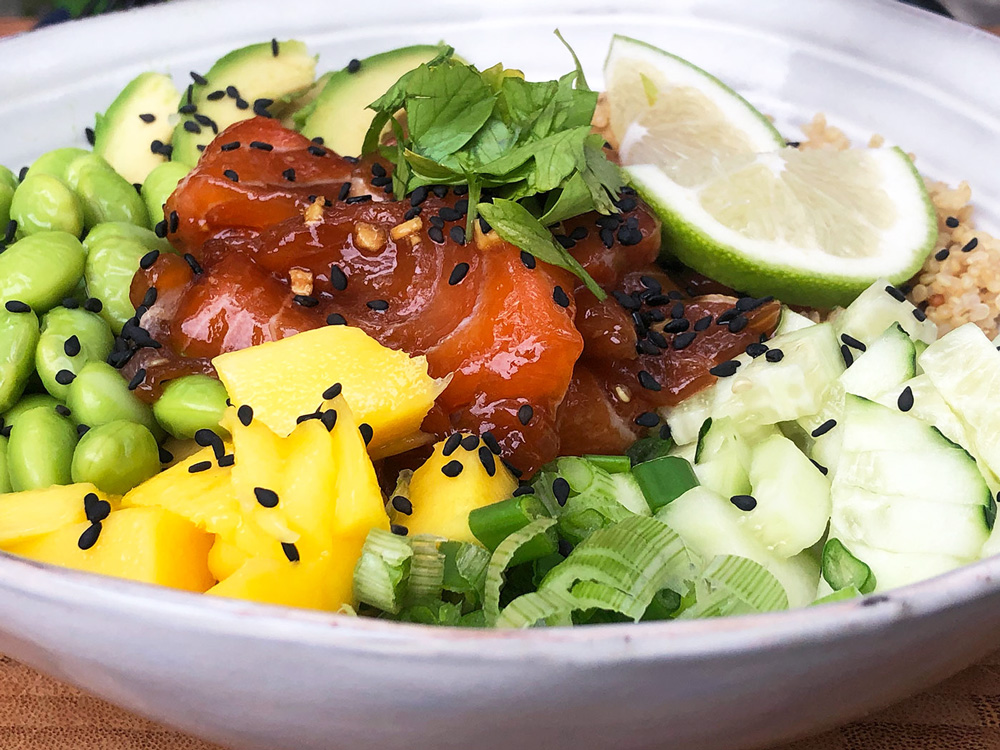 Poke kommer opprinnelig fra Hawaii, og betyr simpelthen “å kutte”. På Hawaii serveres denne retten stort sett som gatemat. Men poke bowl kan veldig fint spises både til lunsj og til middag – og er en sunn og perfekt rett for de som ønsker å passe på kroppen sin!